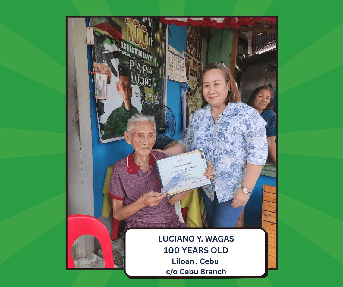 Five (5) centenarians attended in person and received a cash incentive and certificate of recognition. Seven (7) others were recognized through the Branches
